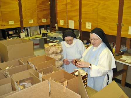 the older designs (pictured above, on the table) and some new designs, designed and based on original watercolors by the sisters at the Monastery